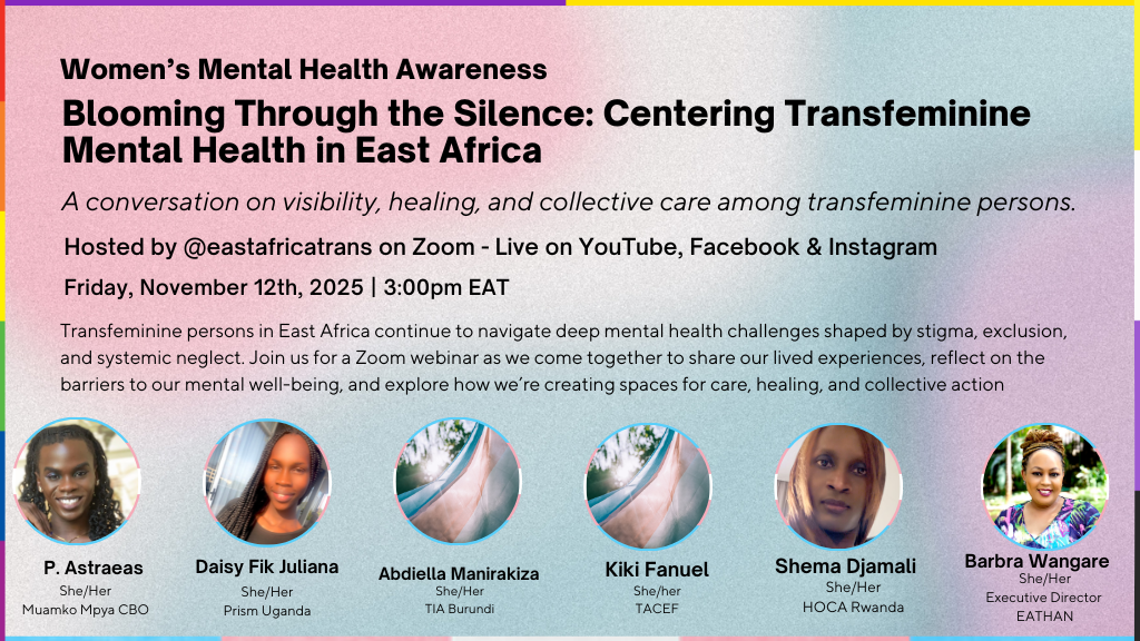 This week, we are hosting a regional conversation titled “Blooming Through the Silence: Centering Transfeminine Mental Health in East Africa” on Friday, November 14, 2025, at 3 PM EAT.